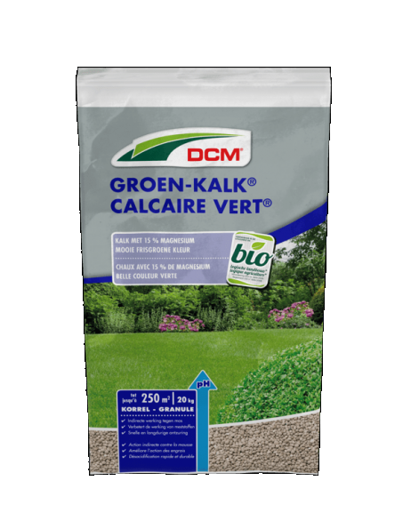DCM Groen kalk is een makkelijk te strooien kalksoort. Het heeft een langdurige werking, gaat verzuring van de bodem tegen en zorgt voor een betere opname van voedingsstoffen. Daarnaast is het rijk aan magnesium, wat resulteert in een groenere bladkleur.