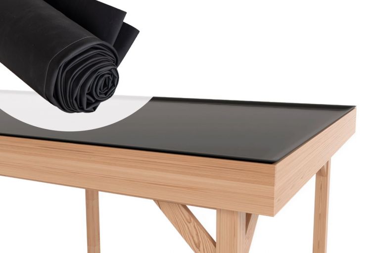 EPDM dakbedekking is een hoogwaardige rubberenfolie. EPDM is resistent tegen UV-stralen en behoudt haar kwaliteit bij verschillende (extreme) weersomstandigheden zoals hitte en kou. Hierdoor is de duurzaamheid van EPDM hoger dan de duurzaamheid van dakleer. Het EPDM wordt aan de dakplanken van het tuinhuis vastgelijmd.