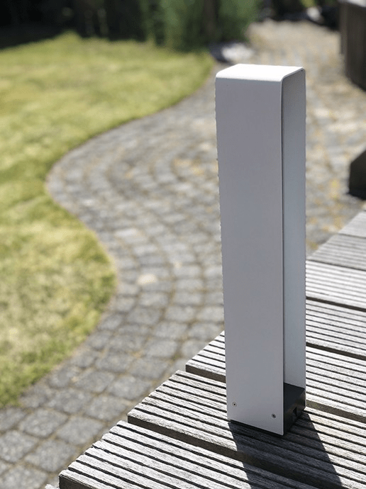Staande buitenlamp ACE HIGH geeft aan 2 zijden een gespreid licht naar beneden. Geschikt voor verwerking tussen planten en siergrassen.De EASY-LOCK wordt standaard meegeleverd bij dit armatuur. De kabellengte aan dit armatuur is 60cm. Een hoogwaardige FCBV coating in de kleur White. Goed te combineren met andere armaturen in dezelfde kleur.