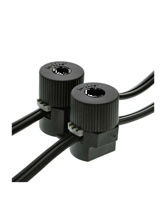Kabelverbinder voor het verbinden van twee in-lite laagspanningskabels 12 volt bij een gesplitst kabelplan.