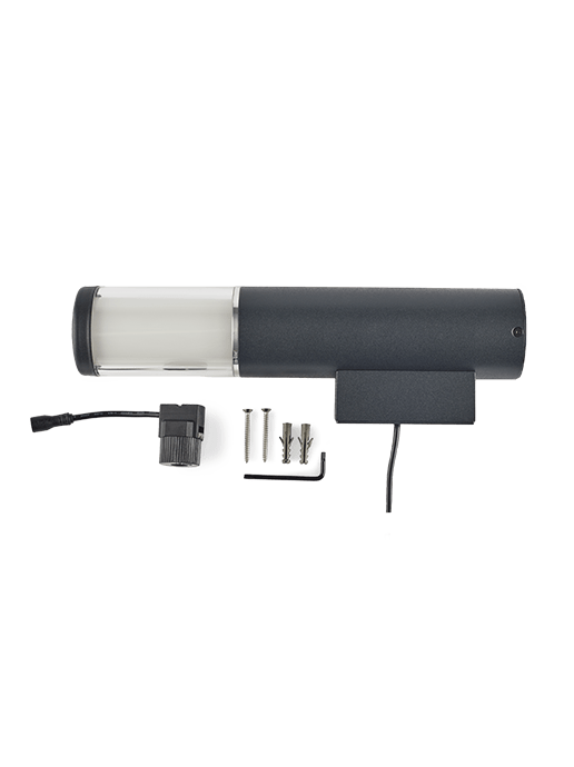 Wandlamp LIV WALL is uitgevoerd in een hoogwaardige FCBV coating met een smalle zilverkleurige ring. Geeft rondom een sfeervol warm wit licht. De EASY-LOCK wordt standaard meegeleverd bij dit armatuur. De kabellengte aan dit armatuur is 60cm. TIP: Denk aan een verlengkabel. Bekijk hier alle wandlampen buiten. Een hoogwaardige FCBV coating in de kleur Dark Grey. Goed te combineren met andere armaturen in dezelfde kleur.