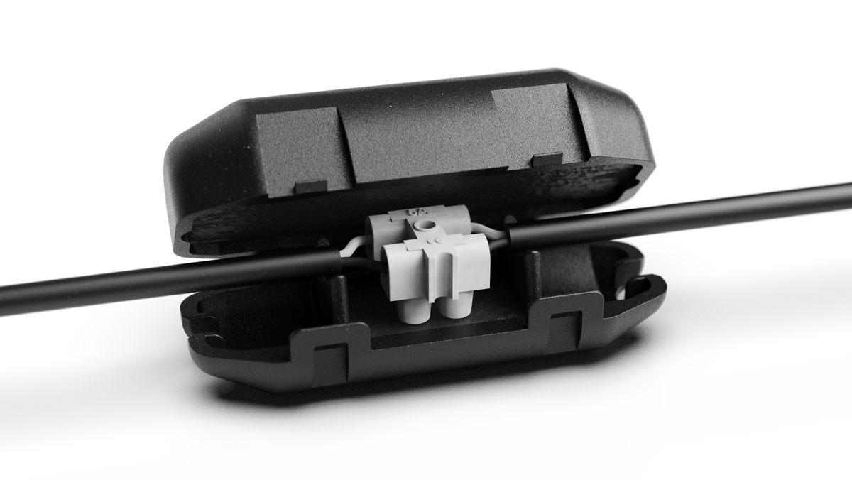 WATERLOCK is een IP-68 connectoraccessoire. 100% waterdicht en ontworpen voor het verlengen van één mini-connectorkabel in een vijver of in natte omgevingsomstandigheden.